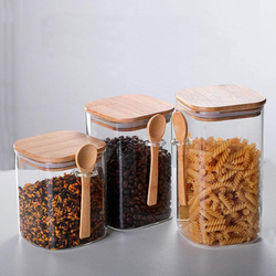 מיכל מזון ביתי מטבח בית מחסן מיכל מזון צנצנת עם כפיות במבוק