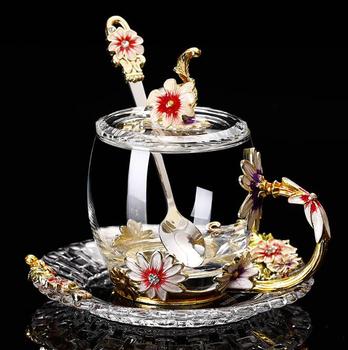 Tasse en verre cristal résistant aux hautes températures tasse à thé transparente de luxe légère cadeau de fête