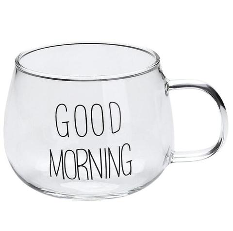 Vetro resistente al calore tazze da latte rotonde tazze per la colazione buongiorno tazze da forno a microonde tazze di vetro