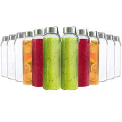 ガラス製ウォーターボトル18オンスステンレススチールリークプルーフリッドプレミアムソーダライム再利用可能な飲用ボトルとして最適