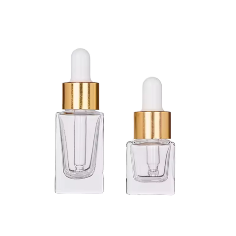 高級10ml 20mlスクエアガラス製エッセンシャルオイルボトルドロッパー付きスキンケアクリームとフェイスクリームホットスタンピング表面